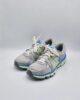 This is a pair of Nike Dual Fusion ST2 running shoes in grey/silver with lime green and blue accents.