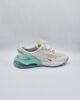 This is a pair of Nike Air Max 270 GO youth sneakers in a white, purple, and green colorway.